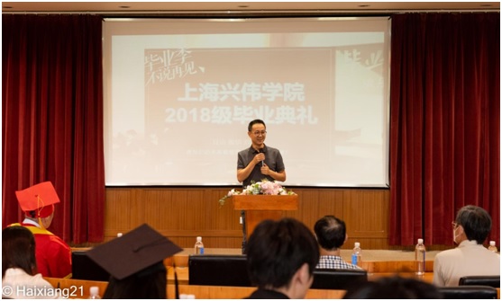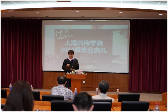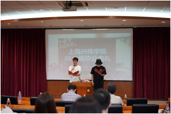 报告厅门口矗立的典礼会标“上海华体网页版登录入口,华体(中国)2018级毕业典礼”在淡蓝色背景衬托下,显得典雅庄重;橙色的毕业口号“自由、激情、致青春”像星星般点缀在会标下,伴着仙人掌花瓣,闪闪发光,让会标显得活泼可爱,如同毕业生们正蓬勃向上、灿烂燃烧的青春。2019级学生卢楚韬、阚晨主持典礼。